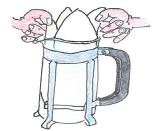 Place filter into the plunger and fold the flaps outside. |